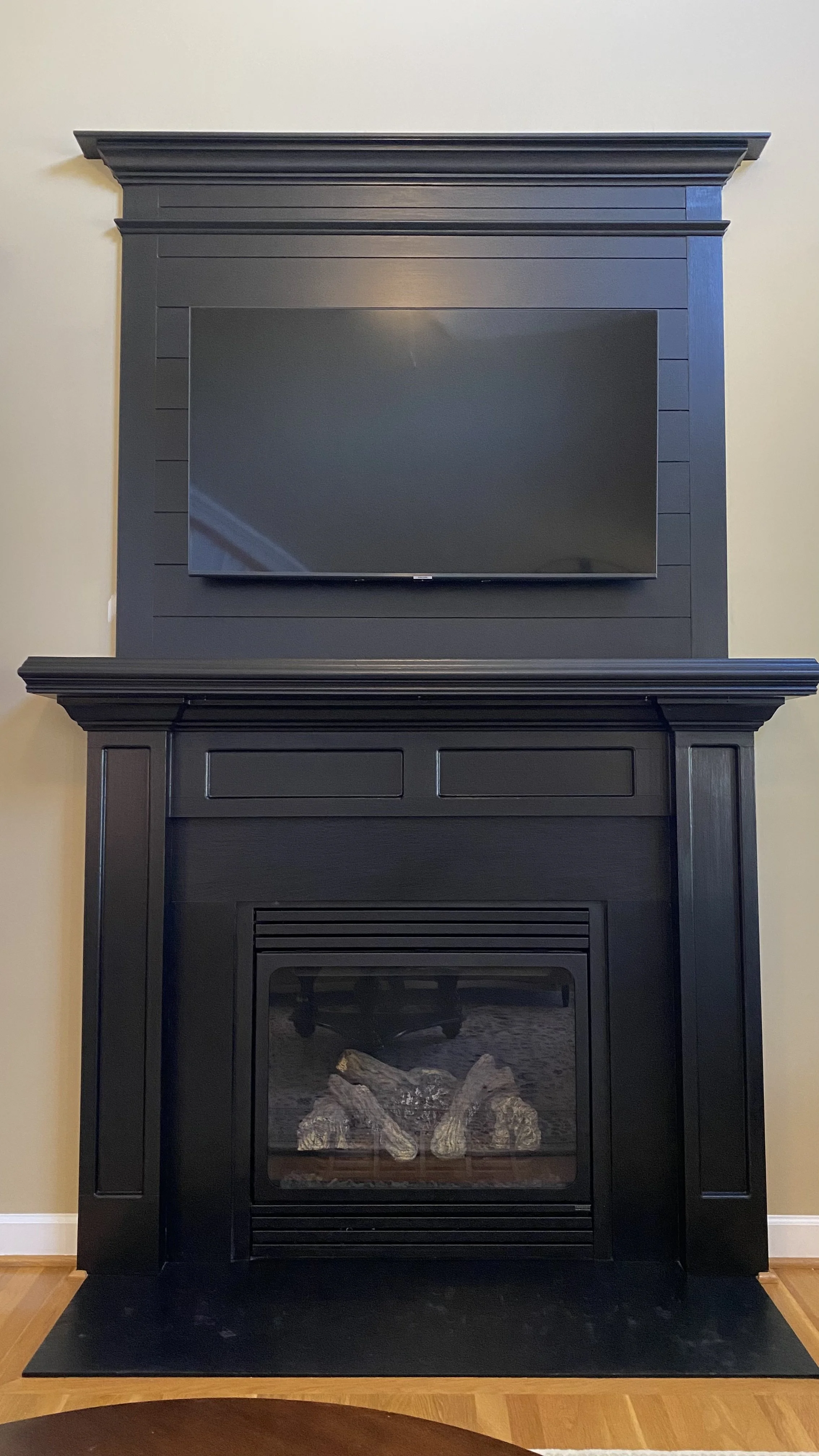 Our customers have requested a variety of updates and upgrades to their existing fireplace surrounds. We have had the pleasure of milling fluted panels, building custom pillars, increasing mantle thickness, and adding new trim details. Another popular request is to provide a solution to an outdated TV niche found just above the mantel. Our services can be limited to the woodworking portion alone, or we can provide a full service package so you never have to clean a paint brush.